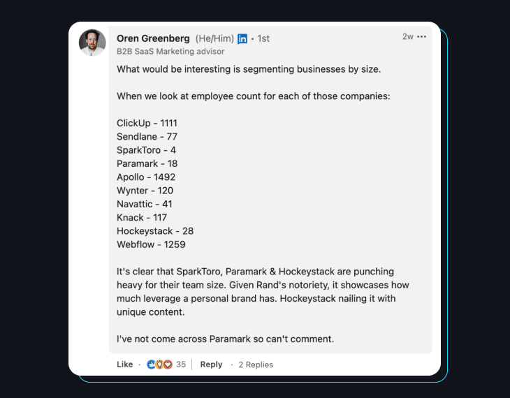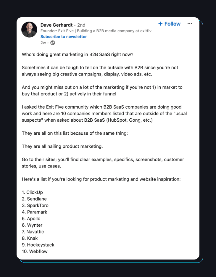 The post from Dave Gerhardt shows just what a leveller a personal brand is in SaaS: