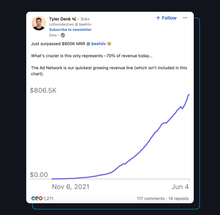 Look, I know Beehiv is a huge success story, but this personal branding route isn't exclusive to VC-backed SaaS.